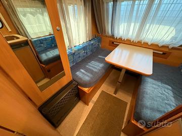 Frigorifero trivalente, stufa Truma, cucina 3 fuoch, bagno con wc Thetford e doccetta, boiler acqua calda, stabilizzazione anti sbandamento, veranda.