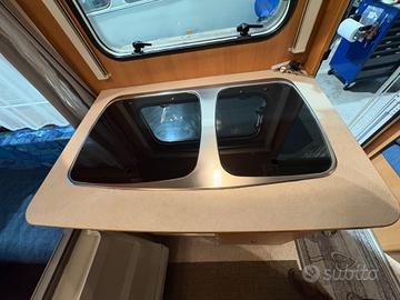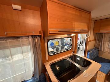 Frigorifero trivalente, stufa Truma, cucina 3 fuoch, bagno con wc Thetford e doccetta, boiler acqua calda, stabilizzazione anti sbandamento, veranda.