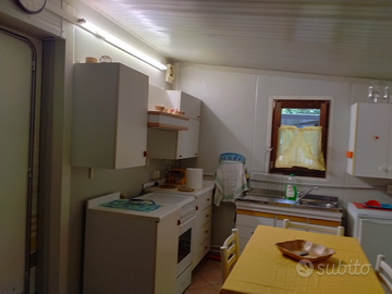 La struttura si trova nel villaggio camping quattro stagioni di Sarnano (MC) vicino ai campi da sci di Bolognola e Sasso tetto .In più si possono fare tracking e affittare bike per chi è amante del verde ,molto belle sono le cascate sperdute . In una piazzola del campeggio è situato la struttura composta da casetta e roulotte con 7 posti letto ,con bagno e cucina .La struttura ha una veranda, dove si può mangiare all'estero, perché la struttura è completamente recintata in legno,con due cancelli da entrambi i lati . Il campeggio offre i servizi igienici,acqua,docce, illuminazione notturna e ritiro della spazzatura. Qui puoi trovare anche :campi di bocce,tennis, calcio, beach volleyball,bar, ristorante,due piscine,tavoli da ping pong,giochi per bambini e intrattenimento per grandi e bambini.La tariffa di tutti questi servizi che vi ho elencato costa €130 al mese il camping rimane aperto x 11 mesi all'anno, chiuso solo il mese di novembre.Si possono avere ospiti che non pagano nulla e possono usufruire di tutti i servizi del camping . La casa più roulotte compresa di tutto
