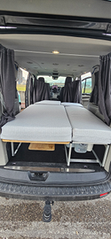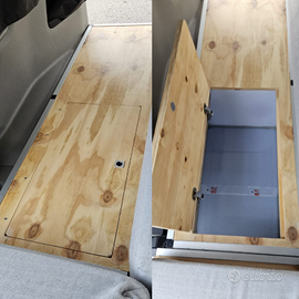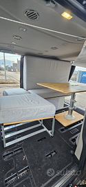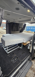 Soluzione molto pratica e versatile per chi vuole camperizzare il furgone senza interventi invasivi. Struttura letto con tavolo telescopico per furgone composta da pianali in legno e struttura in alluminio, leggero e facile da montare anche in autonomia. - La struttura dispone di fissaggi al veicolo, ma non sono obbligatori, una volta montata resta in posizione senza muoversi - Pensata per offrire praticità e spazio di stivaggio, altezza adatta per riporre il potty (wc), botola per riporre cuscini/coperte o altro - Dimensioni letto: 120 cm di larghezza e doppia lunghezza, 200 cm parte lunga e 185 cm parte corta - Materassi sfoderabili tripla densità - Grande tavolo telescopico facile da alzare attraverso la maniglia, molto ampio e comodo per mangiare Visibile a Brescia.