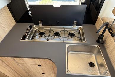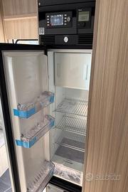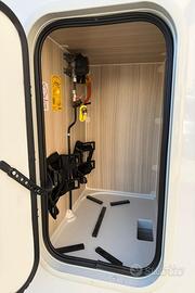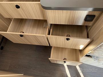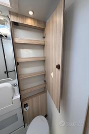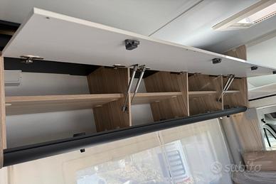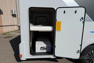 Il veicolo e dotato di cellula con pareti e tetto in vetroresina,bandelle in alluminio,