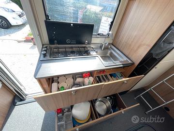 Mansardato di ultima generazione, grande letto matrimoniale posteriore, letto matrioniale in mansarda, stufa canalizzata Truma, boiler acqua calda, bagno con vano doccia semi separato, porta scorrevole, wc a cassetta estraibile, frigo grande trivalente automatico, piano cottura 3 fuochi con copertura in cristallo, ampio vano garage posteriore trasversale (con apertura da entrambi i lati ), tendalino 4 mt, luce esterna, zanzariera sulla porta d'ingresso, gradino d'ingresso, cruise control, autoradio, idroguida, specchietti elettrici + alzacristalli elettrici, sempre tagliandato e revisionato, tutto documentabile.