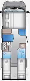 Nella parte posteriore del camper troviamo un pratico letto gemelli ed infinie un ampio garage doppio portellone per portare con se tutto il materiale necessario.