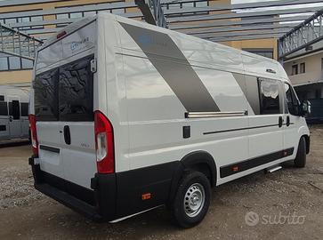 Qusto van lungo 6,36m monta su una meccanica Fiat Ducato 2.2 140cv 35H, grazie al suo letto posteriore matrimoniale basculante manualmente permette di variare lo spazio di carico lasciando l'opportunità di caricare una moto, uno scooter o tutta l'attrezzatura che serve per la vacanza.