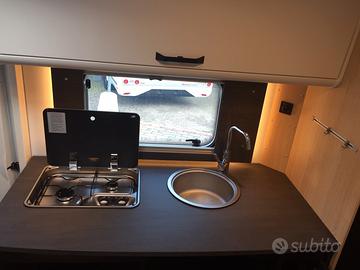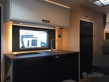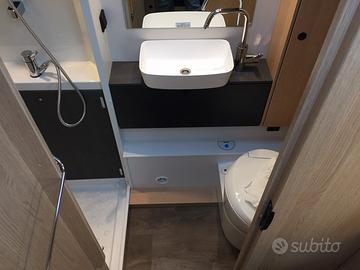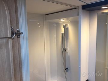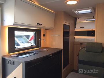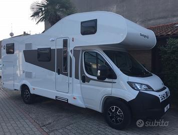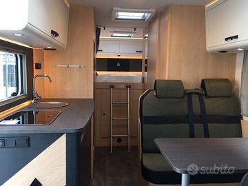 Mansardato omologato 5 posti viaggio con dinette centrale e matrimoniale in coda con sottostante garage. Al centro la grandissima cucina con cassetti e pensil, locale toilette con doccia separata. La grande vivibilità e capacità di stivaggio lo rendono perfetto per lunghe vacanze anche nei periodi invernali. La dotazione prevede: meccanica Fiat Ducato 140 cv, aria condizionata in cabina, cruise control, traction+ ed hill descent control, Start&Stop, specchi retrovisori elettrici riscaldabili, cerchi in lega da 16 pollici, tetto e parete posteriore in vetroresina antigrandine, volante multifunzione in pelle con comandi radio, leva del cambio in pelle, serbatoio diesel da 90 litri, oscuranti e zanzariere, zanzariera porta di ingresso, tappezzeria Green Trail, luce esterna led, secondo portellone garage, frigorifero da 156 litri con cella freezer separata, riscaldamento Truma Combi 6 gas, predisposizione cavi retrocamera, gradino elettrico, paraspruzzi. OMOLOGAZIONE 5 POSTI DIMENSIONI:LUNGHEZZA: cm 726LARGHEZZA: cm 232ALTEZZA: cm 314 € 70.540,00 SU STRADAPRONTA CONSEGNA