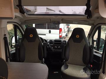 La dotazione prevede: meccanica Fiat Ducato 140 cv, aria condizionata in cabina, doppio airbag, cruise control, Stop&Start, ABS, ESP, traction + ed hill descent control, specchi retrovisori elettrici riscaldati, cerchi in lega da 16 pollici, attacchi isofix, finestre con cornice a filo, veranda, illuminazione ambiente a led, gradino elettrico maggiorato, fendinebbia con funzione cornering.