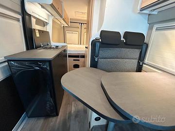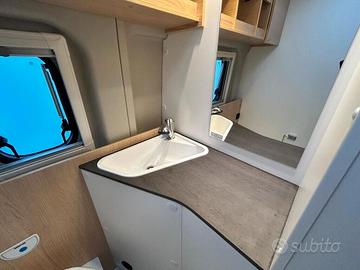 MARCA: SUNLIGHT MODELLO: CLIFF 600 ENTRY MECCANICA: PEUGEOT 2.2 140CV 103KW EURO 6D TIPOLOGIA: FURGONATO CON LETTO TRASVERSALE POSTI LETTO: 2 POSTI OMOLOGATI: 4 LUNGHEZZA: 5.990mm LARGHEZZA: 2.050mm ALTEZZA: 2.610mm MASSA IN ORDINE DI MARCIA: 2820kg (2679kg a 2961kg) OPTIONAL MONTATI SUL VEICOLO: - PACCHETTO CERCHI IN LEGA BICOLOR (Volante e pomello del cambio in pelle, Bocchettone aria con applicazioni cromate (techno-trim), 16" cerchi in lega bicolor) (+8,0kg); - PACCHETTO BASE (Oblò panoramico 70 x 50 cm, Dotazioni doccia, Finestra in bagno, Barra appendiabiti in bagno, Ampio gradino d'ingresso, Estensione del tavolo della dinette) (+31,4kg); OPTIONAL DI SERIE SUL VEICOLO: - Peugeot Boxer 3.500 kg - 2.2 Blue HDi - 103 kW / 140 CV Euro 6 - Cambio manuale 6 marce; - Cabina di guida con carrozzeria bianco; - Funzione Start & Stop incl. booster; - Serbatoio 60 l; - Climatizzatore manuale nella cabina guida; - Cruise Control; - Pneumatici M+S* Camping (fiocco di neve); - Trazione anteriore; - Luci diurne integrate nei fari; - Fari con cornice nera; - Airbag conducente; - Freni a disco, stabilizzatori delle ruote posteriori e anteriori, convezione termica, tachimetro, servosterzo, fari regolabili in altezza, immobilizzatore, cinture di sicurezza addominali e ; - ABS, EBD, ESP, ESC incl. ASR e Hillholder; - Impostazione ESC e Traction +; - Computer di bordo incl. Indicatore della temperatura; - Alzacristalli elettrici e chiusura centralizzata della cabina; - Specchietti elettrici e riscaldati; - Antenna integrata negli specchietti esterni; - Predisposizione radio con altoparlanti; - Volante multifunzione; - Kit Fix & go; - Portabevande nella consolle centrale; - Presa USB; - Sedili conducente / passeggero nella stessa tappez. degli interni con braccioli; - Sedili cabina girevoli; - Sedile del conducente e del passeggero con supporto lombare; - Altezza e inclinazione regolabile per sedile conducente; - Garanzia anti infiltrazion