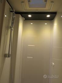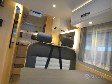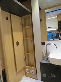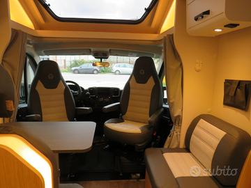 Perfetto per chi cerca in un camper la solidità e lo spazio,il garage porta tranquillamente uno scooter la dinette con la possibilità dei sedili girevoli e divanetto da modo di mangiare in 5 senza problemi,bagno vario ampio e luminoso