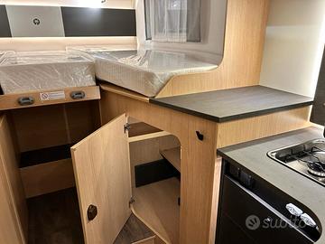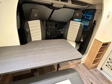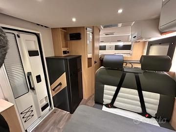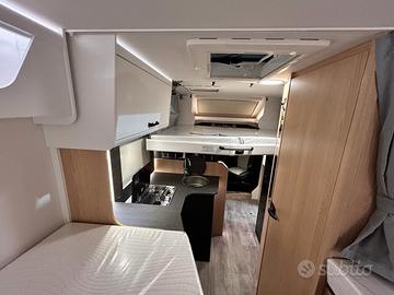 - PACCHETTO BASE (Bridge Light, Porta d'ingresso comfort con finestra, Porta con zanzariera, Oblò panoramico sulla dinette, Oblò vetro trasparente 400 × 400 mm, Predisposizione cavi per la retrocamera);