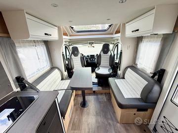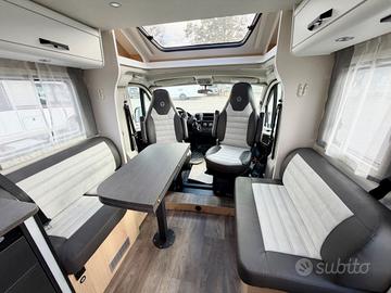 CITROEN JUMPER 3500 KG 2.2 140 CV, TAPPEZZERIE ADVENTURE, FINESTRA SUL CUPOLINO, FINESTRE CON CORNICI, 2° PORTELLONE GARAGE, FRIGO GRANDE 156 L, POSSIBILITA' TRASFORMAZIONE LETTI SINGOLI IN MATRIMONIALE, PACCHETTO BASE (BRIDGE LIGHT, PORTA INGRESSO COMFORT CON FINESTRA, PORTA CON ZANZARIERA, OBLO' PANORAMICO 70 X 50, OBLO' VETRO TRASPARENTE 400 X 400), PACCHETTO PARAURTI VERNICIATO (PARAURTI VERNICIATO NEL COLORE DEL VEICOLO, SKID PLATE NERO, FARI FENDINEBBIA) PACCHETTO CERCHI IN LEGA BICOLOR (VOLANTE E CAMBIO IN PELLE, BOCCHETTONE ARIA CON APPLICAZIONI CROMATE, CERCHI IN LEGA 16''), SERBATOIO GASOLIO 60L, CRUISE CONTROL, GARANZIA INFILTRAZIONI 7 ANNI, GRADINO ELETTRICO, CARICO GARAGE POSTERIORE FINO A 150 KG, ISOFIX PER DUE POSTI, LETTO BASCULANTE CON ELEMENTI CLIMA PLUX, PEDANA DOCCIA IN LEGNO, IMPIANTO SOLARE 100 W CON REGOLATORE MPPT, TRUMA COMBI 6 GAS