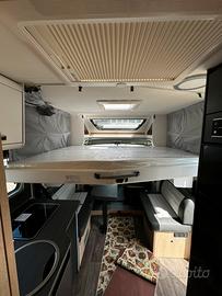 -Fiat Ducato 3.500 kg - 2.2 Multijet - 132 kW / 180 CV Euro 6D cambio manuale 6 marce, Cabina di guida con carrozzeria bianco, Paraurti verniciato nel colore del veicolo, Cerchi in lega 16" originali Fiat, Tappezzerie Adventure, Adesivi Adventure, Oblò sul cupolino, Finestre con cornici, Applicazioni di design posteriori, 2° portellone, Frigo grande 156 l con freezer separato 29 l ,Possibilità trasformazione dinette, Pacchetto base profilati (Bridge Light, Porta d'ingresso comfort con finestra, Porta con zanzariera ( pezzo unico ), Oblò panoramico sulla dinette, Oblò vetro trasparente 400 × 400 mm, Predisposizione cavi per la retrocamera)