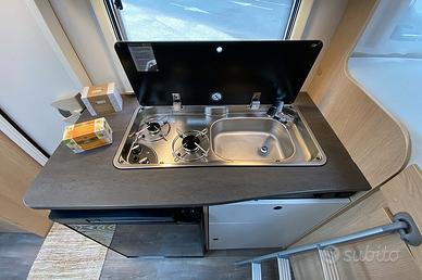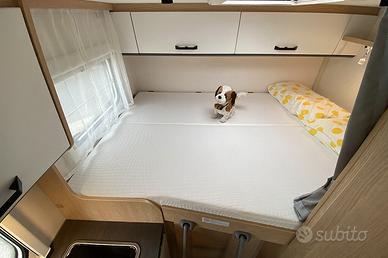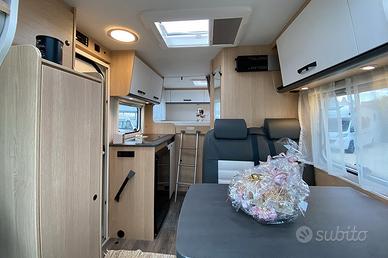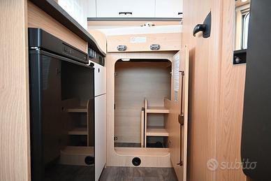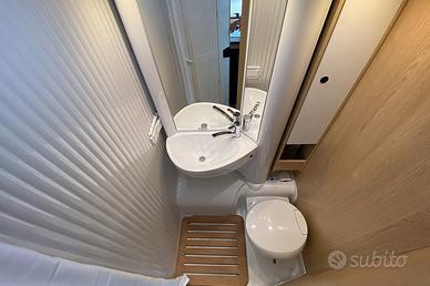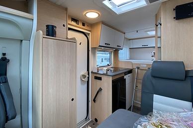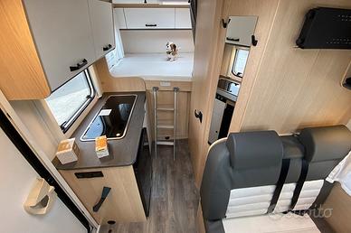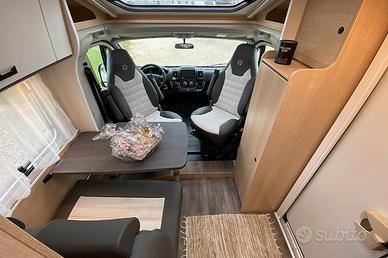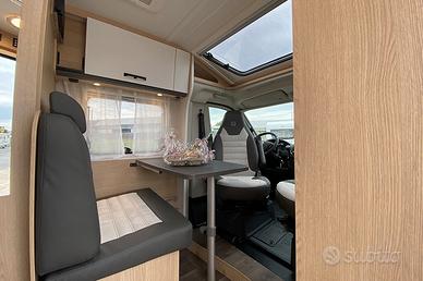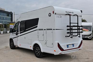 SUNLIGHT V 60 ADVENTURE EDITION: splendido semintegrale ultra compatto in condizioni pari al nuovo. Larghezza ridotta, letto matrimoniale trasversale in coda, garage, bagno Vario con parete ruotabile e ben due armadi guardaroba! Perfetto per la coppia che ama viaggiare in modo agile!