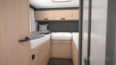 Dotazioni extra: Piastra paramotore nera + fari fendinebbia con cornering function + paraurti verniciato (€500,00), Comandi radio al volante + antenna (€300,00), Cerchi in lega 16" + volante e pomello cambio in pelle + diffusori aria cruscotto cromati (€1.250,00), Serbatoio acque grigie riscaldato e coibentato (€400,00), Oscurante parabrezza + vetri laterali cabina plissettati (€500,00), Oblò panoramico sopra la mansarda (€1.400,00), Porta ingresso 580 mm con finestra e zanzariera (€1.200,00).