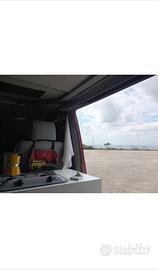 Allestimento CAMPERIZZATO REIMO (famosa marca tedesca di camper assieme a Westfalia) con TETTO A SOFFIETTO + finestra panoramica apribile + 2 finestre laterali con zanzariera! Panca letto nei sedili posteriori x un tot di 4posti letto. Omologato trasporto fino a 7 persone.