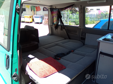 Vendo multivan t4 anno 1997. . 1900cc diesel . 246.000 km . Immatricolato uso promiscuo. Semi camperizzato, letto matrimoniale da sedili posteriori,blocco cucina con frigo removibile,tanica acqua da 70l collegata nel baule e attacco gas. possibilità di installare sesto posto rimuovendo il blocco.Sedile anteriore passeggero girevole e tavolino a scomparsa .Revisione effettuata a maggio 2025, libretto tagliandi, mezzo pronto a partire,piccoli lavori da effettuare che non compromettono la funzionalità del mezzo stesso. Qualsiasi prova . Prezzo 7500? non trattabile .