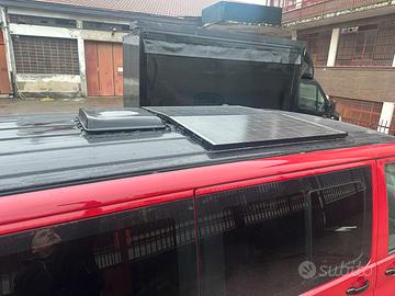 Vendo volkswagen T5 caravelle camperizzato tipo multivan completamente rivisto con un mare di lavori tutti accompagnati da fatture, 1.9 tdi 102 cv, fine 2006 euro 4, ok neopatentati, revisionato e tagliandato con possibilità di iscrizioni ASI, completamente rivisto meccanicamente con foto, km attuali da contachilometri 300000 ma negli ultimi 25000 km sono stati fatti TESTA COMPLETA TURBINA DISTRIBUZIONE FRIZIONE VOLANO REVISIONE CAMBIO PER ROTTURA 4MARCIA, AMMORTIZZATORI E SEMI ASSI COMPRESSORE CLIMA, MOTORINO AVVIAMENTO SCATOLA DEVIO ARIA E COMANDI CLIMA, BATTERIA camperizzato professionalmente con 2 pannelli solari da 200w 1 batteria agm da 100ah della Zenith, riscaldamento a gasolio, mobile con dentro wc, frigorifero a compressore che arriva anche a-20*, lavandino con doccino e serbatoio acqua da 50 litri, ovviamente tavolo e panca letto tipo multivan, riverniciato 2 anni fa causa scolorimento, appena lucidato prese usb di per ricaricare telefono/tablet vetri "limousine" oblò turbo vent, in perfette condizioni sia meccaniche che estetiche aria condizionata viaggio, omologato autovettura no perditempo, auto in uso quotidiano dai consumi ridicoli e spese di gestione bassissime, compreso gomme montate su cerchi offroad omologato a libretto NO PERDITEMPO