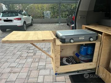 o Angolo cucina con piano di lavoro e spazio dedicato per fornello portatile