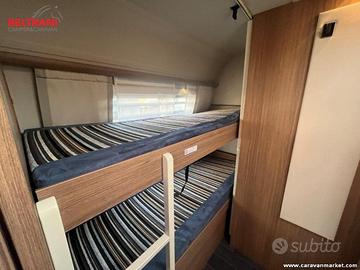 Caravan di alta qualità, bellissimo allestimento interno; garantita 10 anni sulle infiltrazioni.DISPOSIZIONE:Letto a castello trasversale in coda; bagno spazioso, con cabina doccia separata lavantino con mobile e wc; dinette classica trasformabile in letto singolo; letto matrimoniale a penisola centrale nella zona anteriore.