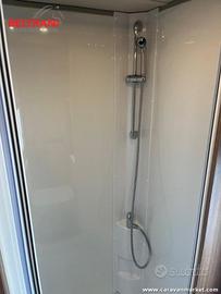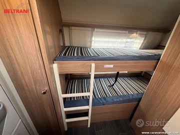 Caravan di alta qualità, bellissimo allestimento interno; garantita 10 anni sulle infiltrazioni.DISPOSIZIONE:Letto a castello trasversale in coda; bagno spazioso, con cabina doccia separata lavantino con mobile e wc; dinette classica trasformabile in letto singolo; letto matrimoniale a penisola centrale nella zona anteriore.