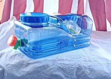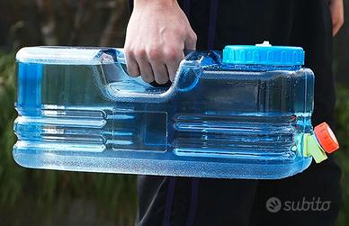 Condizione Nuovo le foto da aperta sono a titolo illustrativo. Contenitore per acqua da campeggio da 5,5 litri con rubinetto serbatoio per uso alimentare, senza perdite veramente ottima per Van e Roulotte visto il minimo ingombro come in foto ,multifunzione per campeggio all'aperto/escursionismo stoccaggio di emergenza da tenere in Camper o Camion o semplicemente auto per emergenza anche come lavamani. Caratteristiche: 1. Materiale PE alimentare, privo di bisfenolo A (BPA).Ha un colore trasparente, un aspetto pulito ed è privo di impurità e odori, garantisce la sicurezza dello stoccaggio dell'acqua. 2. Rubinetto dell'acqua staccabile con tappo di tenuta: la tanica dell'acqua viene fornito con un rubinetto dell'acqua staccabile che può essere sostituito con un tappo di tenuta per prestazioni di tenuta migliori. 3. Apertura larga 10cm di diametro per una facile pulizia e riempimento, con un'apertura piccola per inserire cannule di scolo, è facile da pulire e consente un facile riempimento dell'acqua senza fuoriuscite o difficoltà. 4. Costruzione addensata e durevole-antiscivolo e resistente alla corrosione. Il rubinetto offre una grande portata d'acqua e la sua manopola rotante consente un facile controllo del volume dell'acqua.