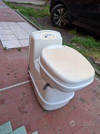 è come una normale tazza da camper ma in più ha la valvola di scarico automatica, sul lato della tazza c'è l'interruttore per aprire e chiudere.