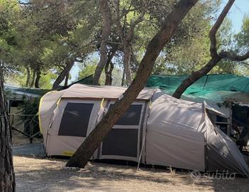 Vendo tenda Quechua 6 posti XL per inutilizzo usata 2 estati. Facilmente montabile. Spaziosa luminosa, ma soprattutto fresca, grazie alle 5 porte/finestra con zanzariere. 2 Stanze removibili. No spedizioni. No perditempo prezzo trattabile 250 euro.
