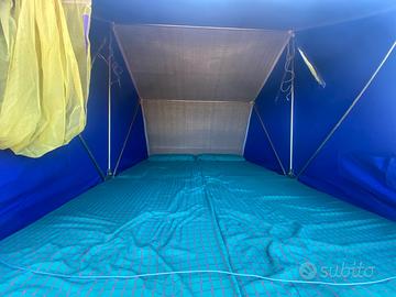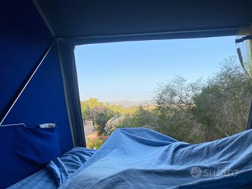 Vendo tenda da tetto Air camping taglia M, tenuta bene e riposta sempre al coperto a fine di ogni vacanza. La tenda si presenta in buone condizioni, senza strappi e con impermeabilizzazione fatta a agosto dell’ anno scorso. Completa di materasso e suoi cuscini originali e librettino di uso e manutenzione e scala allungabile per mezzi rialzati. Vendo per inutilizzo. Per ricerca: tenda da tetto, Air camping, tenda maggiolina.