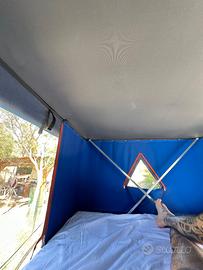 Vendo tenda da tetto Maggiolina XL per qualsiasi vettura o furgone,la tenda è pari al nuovo nessun difetto o altri problemi ,fornita con materasso manovella e scaletta