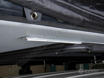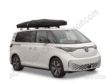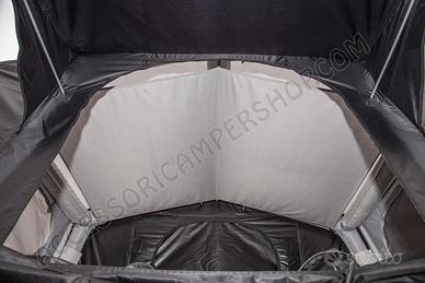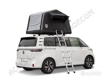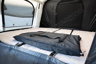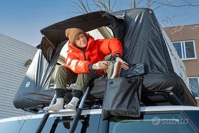 Tenda da tetto con ampia zona notte ad aria BENDIGO AIR REIMO ideale per 2 persone, superficie letto 220 x 140 cm, da fissare sul tetto dell'auto, del furgone o del SUV, fuoristrada, van e furgonati, apertura veloce, fornita con un comodo materassino sfoderabile, scala telescopica in alluminio e tiranti. Può essere utilizzata anche a terra, senza piattaforma o veicolo.