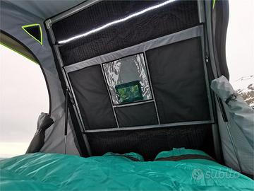 La più sottile, probabilmente la più leggera con queste dimensioni, la più compatta sul veicolo, la più facile da aprire e chiudere. Il suo innovativo sistema di apertura le consente di avere una lunghezza da chiusa di soli 174 cm, per cui si adatta a qualsiasi veicolo, anche i più piccoli. Ma una volta aperta lo spazio interno è da 214 x 140 cm, uno tra i più grandi della sua categoria. E' realizzata con una robusta struttura in alluminio apribile con pistoni a gas. Il tetto doppio strato fornisce un perfetto isolamento da l sole e dal freddo ed è completamente impermeabile. Il corpo tenda è realizzato in tessuto Ripstop® resistente agli strappi, water resistant. Ha due aperture laterali più una grande finestra posteriore per un'ottima ventilazione ed una vista panoramica. Tutte le finestre sono dotate di zanzariera. Il materasso interno da 6 cm di spessore ha un rivestimento sfoderabile e lavabile altamente traspirante.