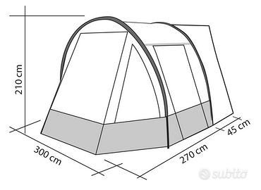 E' composta da telo esterno antipioggia opaco con finestre, paleria e borsa originale, non comprende il telo per il terreno.