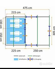 Vendo tenda a tunnel CAMP Feuer tipo Outwell Ferrino, ideale per campeggio familiare o soggiorni prolungati.