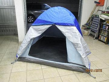 Tenda x 3 persone, dimensioni base 180x200+80 cm., altezza interna 130 cm, peso 3,400 kg.
