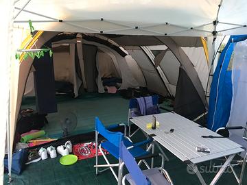 Tenda Quechua T6.2 XL Air, 6 posti letto, tenuta molto bene, ampia e comoda, noi l'abbiamo usata in quattro per due volte, poi abbiamo preso la roulotte e non l'abbiamo più usata, vendo a 250?