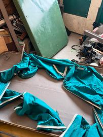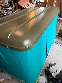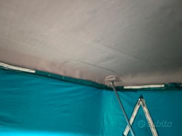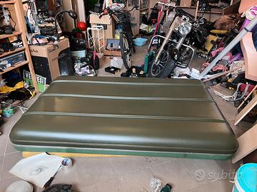 Tenda maggiolina originale, misure 130 x 200 completamente restaurata! verniciatura della parte superiore verde nato raptor antigraffio, meccanica del sollevamento revisionata, rivestimento sottocielo e interno nuovi, ganci di chiusura nuovi inox, telo perfetto, molto bella
