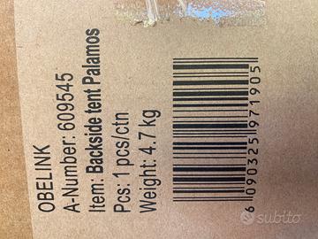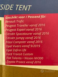 Tenda/veranda per il portellone posteriore di furgoni e van, Palamos Backside tent. Ancora confezionata, mai aperta e mai usata. Per controllare la compatibilità con i modelli di furgone vedere foto allegata.