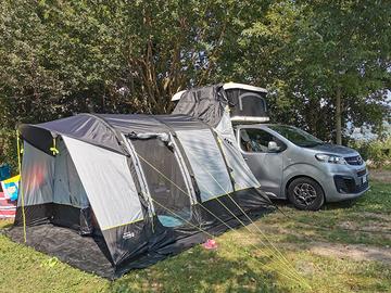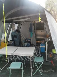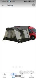 Tenda gonfiabile adatta ai furgoni camperizzati, molto spaziosa. Può essere lasciata montata quando si desidera utilizzare il mezzo. Struttura completamente gonfiabile con pompa manuale in dotazione e collegamento al tetto del mezzo con delle ventose (comprese). 3 ingressi e 2 punti di ventilazione. USATA UNA SOLA VOLTA