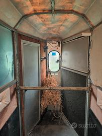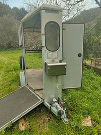 Bertuola trailer 1 posto 1/2 garantito con serbatoio esterno inox da 20 litri, telecamera interna, porta esterna, doppia rampa posteriore e laterale anteriore, lettino interno a parete per riposo del cavaliere in assenza del cavallo, tappeto antiscivolo, tetto rigido in resina, due assi + ruota di scorta, pneumatici nuovi, posizionatori di stabilità posteriori come le roulotte, TUTTO GARANTITO E TENUTO MANIACALMENTE.