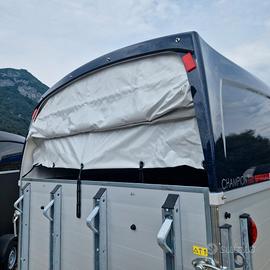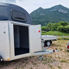 OFFERTISSIMA! Trailer Boeckmann Champion Esprit trasporto cavalli due posti in alluminio Fissa un appuntamento senza impegno, ne vale la pena! 2400 Kg la portata complessiva con possibilità di riduzioni 3100 x 1650 x 2300 mm le dimensioni all'interno R 13 le ruote da carico Pareti laterali in alluminio di alta qualità! Robusto il fondo in alluminio Tetto in vetroresina colore argento metallizzato Senza sovrapprezzo, il tetto è disponibile anche nei seguenti colori: - Colore nero antracite metallizzato - Colore rosso metallizzato - Colore verde metallizzato - Colore blu metallizzato Tendina posteriore avvolgibile automaticamente 2 i finestrini d'aerazione apribili Ruotino di atterraggio automatico e rinforzato 13 pin l'impianto elettrico Illuminazione interna a led Rampa posteriore con sollevatore a gas per facilitare l'apertura GBTRAILERS TRAILER E RIMORCHI DI PRIMA CLASSE Offriamo una vasta gamma di trailer e rimorchi in pronta consegna adatti a qualsiasi utilizzo: trasporto cavalli e animali, trasporto cose, auto, moto, macchinari, attrezzature, barche e gommoni. Disponiamo di due grandi esposizioni con modelli fuoristrada, ribaltabili, furgonati, basculanti, monoasse, doppio asse e triplo asse. Possiamo soddisfare ogni esigenza di trasporto grazie alla varietà dei nostri rimorchi. Fissa un appuntamento senza impegno, ne vale la pena! Lucas: Negozi: -- Sede di Pergine Valsugana Via Al Dos de la Roda, 43 - Cirè - Pergine Valsugana (TN) -- Sede di Verona Località Cà di Capri, 104 - Bussolengo - Verona (VR)