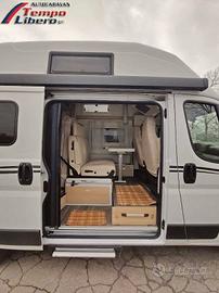 dispone di letto basculante dalle generose dimensioni 195 × 152 cm e di dinette trasformabile in secondo letto 190 × 122 cm, perfetto per ospitare comodamente fino a quattro persone.