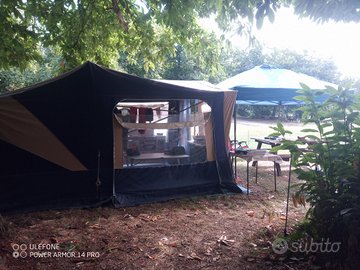 Vendo a malincuore,carrello tenda Trigano ODISSEY con cucina , appena revionata, ruota di scorta , 4 posti letto ( testati si dorme benino) carrello semiautomatico veranda incorporata nel carrello si apre in 10 minuti impianto elettrico integrato. Tutto funzionante, le tele sono messe bene