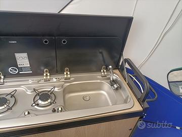 Mobile cucina completo (2 fuochi, lavello, cassetti, alloggiamento per bombola del gas, ecc.)