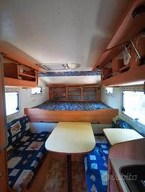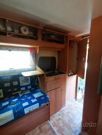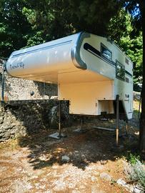 Cellula abitativa scarrabile composta da mansarda matrimoniale, dinette, blocco cucina con 2 fuochi con frigorifero trivalente, toilette con doccia. Riscaldamento con ventilazione forzata. Doccia esterna e doppia cassetta scarico acque nere. 50lt scarico acque chiare. Tre serbatoi acqua potabile (140lt). Boiler con termoregolatore acqua calda. Finestre dotate di zanzariere ed oscuranti. Presa esterna 220wolt. Batteria a scarica lenta. Tendalino esterno, scaletta posteriore per salire sul tetto e raggiungere box. Prezzo trattabile