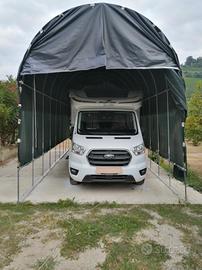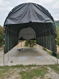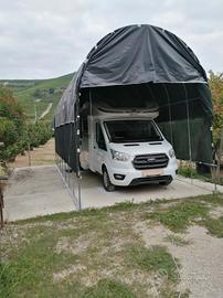 Vendo tunnel per camper compreso di ombreggiante e telone. Misure: 9m x 3.5m. Altezza prima curva 3.5 m Usato 3 anni, fatto fare su misura.