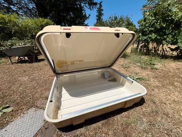 Ultra box Fiamma misure 120*96*40 con staffe nuove e chiavi, perfettamente funzionante. Qualche riparazione vetroresina ma perfettamente stagno.grande volume di carico e meccanismo di apertura e blocco perfetti.