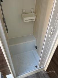 Ampio bagno in coda completo di piatto doccia con miscelatore a parte e asta saliscendi, Wc con cassetta estraibile, lavandino ad angolo con miscelatore