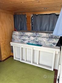 Van camperizzato tre posti auto, appena tagliando gomme nuove, batteria nuova, motore perfetto, allestimento completamente rimovibile con posto letto regolabile, grandezza max una piazza e mezza, wc chimico, attrezzatura per cucina esterna, scala in ferro battuto per arrivare al tetto, struttura porta pacchi personalizzata sul tetto, pannello solare per ricarica energetica, impianto servizi separato dal motore due inverter doccia interna con caldaia a gas. Possibilità di includere nella vendita gazebo tenda gonfiabile per cucina o veranda esterna. Prezzo leggermente trattabile, mezzo studiato e personalizzato per viaggiatori che praticano sport acquatici vista la