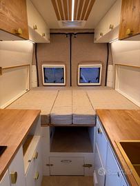 Allestito su misura per coppia con cane, progettato per totale autonomia energetica e per viverci anche a lungo lavorando da remoto. Omologato autocarro uso speciale abitativo, in regola per circolare e abitarci, 2 posti guida e 2 posti letto.