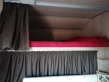 Dinette con panche gavonate e tavolo removibile che si trasforma in letto 2 posti, TV, condizionatore con pompa di calore, Imperiale con letto matrimoniale, armadio.