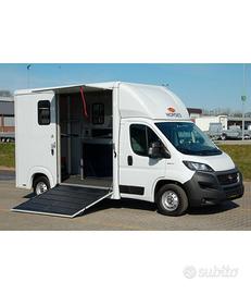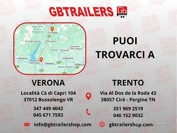 CAMIONCINO VAN TRASPORTO CAVALLI GUIDABILE CON PATENTE B Fissa un appuntamento senza impegno, ne vale la pena! Lo scomparto per cavalli del Compact Basic è dotato di una parete divisoria fissa e di un passaggio per la selleria. Carico del cavallo è facile grazie a una parete divisoria girevole. Struttura in doghe di alluminio ad alta resistenza. Rampa laterale con sollevatore a gas per facilitare l'apertura. Sportello con sollevatori sopra la rampa. Grande selleria accessibile dall'interno e dall'esterno Robuste le protezioni calci Illuminazione interna a led Oblò per aerazione nel tetto 2 i finestrini scorrevoli d'aerazione apribili Imbottiture laterali GBTRAILERS TRAILER E RIMORCHI DI PRIMA CLASSE Offriamo una vasta gamma di trailer e rimorchi in pronta consegna adatti a qualsiasi utilizzo: trasporto cavalli e animali, trasporto cose, auto, moto, macchinari, attrezzature, barche e gommoni. Disponiamo di due grandi esposizioni con modelli fuoristrada, ribaltabili, furgonati, basculanti, monoasse, doppio asse e triplo asse. Possiamo soddisfare ogni esigenza di trasporto grazie alla varietà dei nostri rimorchi. Fissa un appuntamento senza impegno, ne vale la pena! Lucas: Negozi: -- Sede di Pergine Valsugana Via Al Dos de la Roda, 43 - Cirè - Pergine (TN) -- Sede di Verona Loc. Cà di Capri, 104 - Bussolengo - Verona (VR)